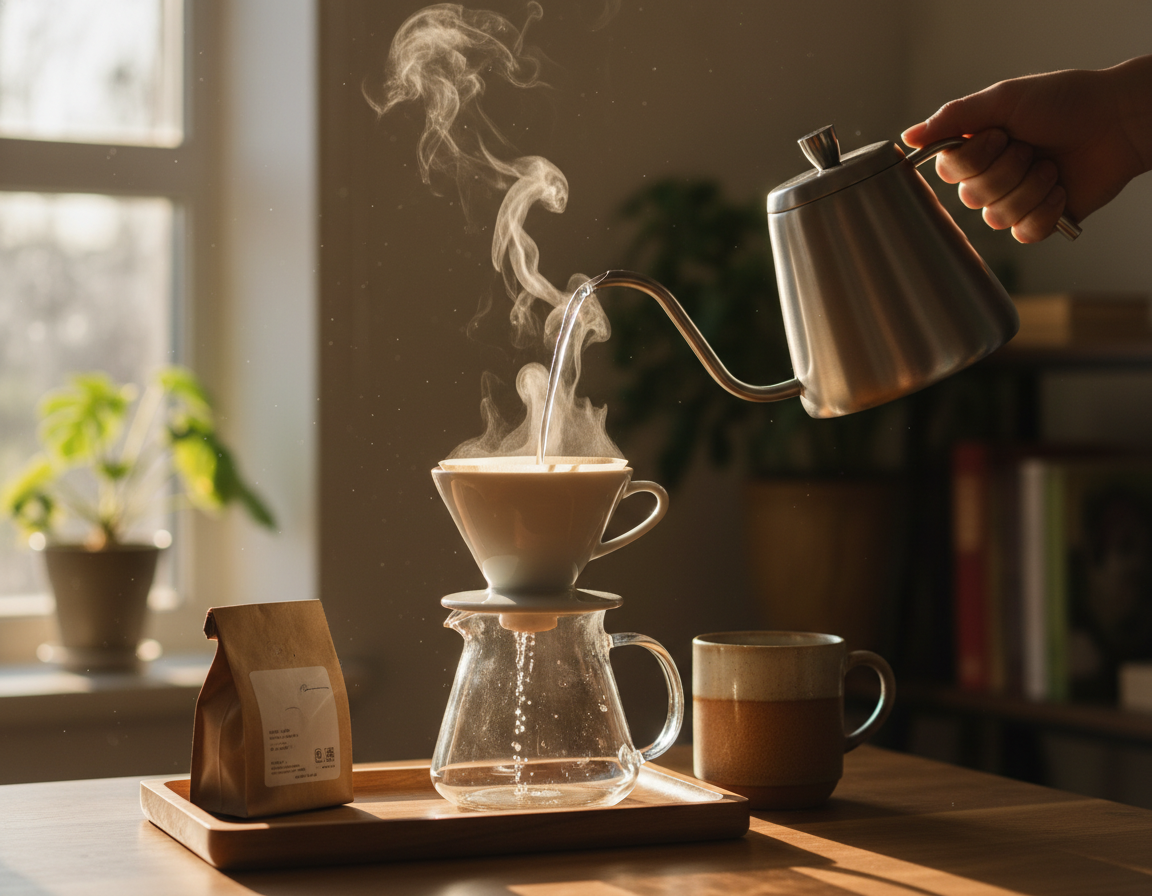 Z praktického hlediska je navíc používání takové konvice velmi přirozené. Jakmile si na ni jednou zvyknete, začne vám připadat normální, že si proud vody řídíte skoro po milimetrech. Při přípravě dripperu se běžně doporučuje lít vodu postupně a kontrolovaně, často v kruzích a bez zbytečného přelévání přes stěny papírového filtru. Baristická konvice vám tenhle styl práce výrazně usnadní.