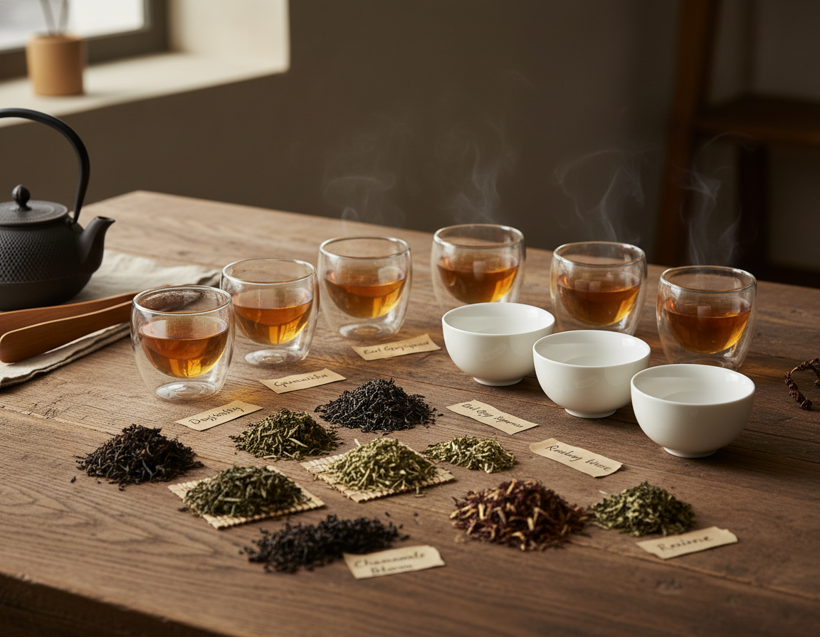 Dobré je začínat jednoduše. Nejpraktičtější bývá vybrat si čtyři až pět čajů ze stejné kategorie a porovnávat je vedle sebe. Třeba několik černých čajů, několik zelených čajů nebo několik oolongů. Když vedle sebe postavíte příliš odlišné čaje, začátečník se v nich snadno ztratí. Když ale porovnáváte podobnou skupinu, rozdíly začnou vystupovat mnohem jasněji.