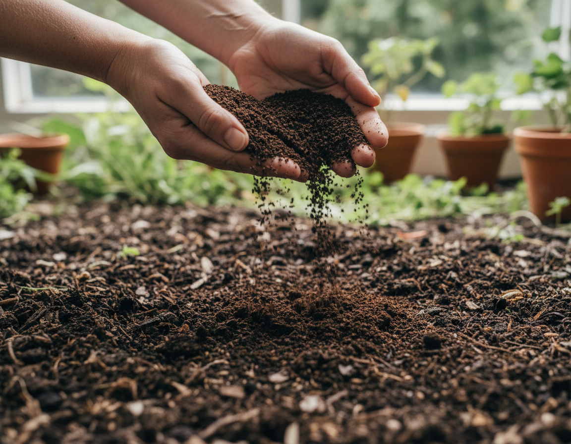 Nejspolehlivější a nejrozumnější využití kávové sedliny je kompost. Kávová sedlina patří mezi vhodné „zelené“ materiály do domácího kompostu a nejlépe funguje ve spojení s „hnědými“ složkami, jako jsou suché listí, papír nebo drobné větvičky. Právě kompost je z pohledu běžné domácnosti místo, kde má použitá sedlina největší smysl.