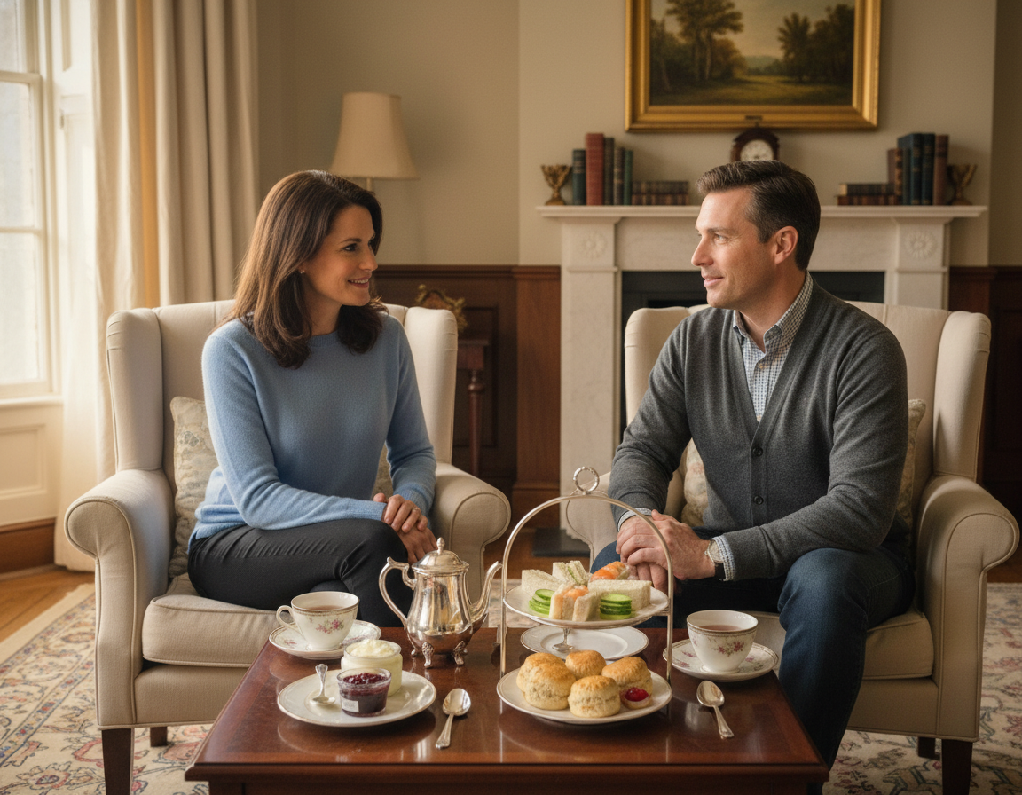 Stejně důležitá jako čaj je i slaná a sladká část odpoledního posezení. Klasické afternoon tea se skládá z jemných finger sandwiches, scones s clotted cream a džemem a nakonec z drobných zákusků nebo pečiva. Když si budete chtít připravit domácí verzi, nemusíte všechno kopírovat do posledního detailu. Bohatě stačí malé sendviče, něco sladkého a dobře připravený čaj. Ale právě kombinace slaného začátku a sladkého pokračování dělá celý rituál tak příjemným.
