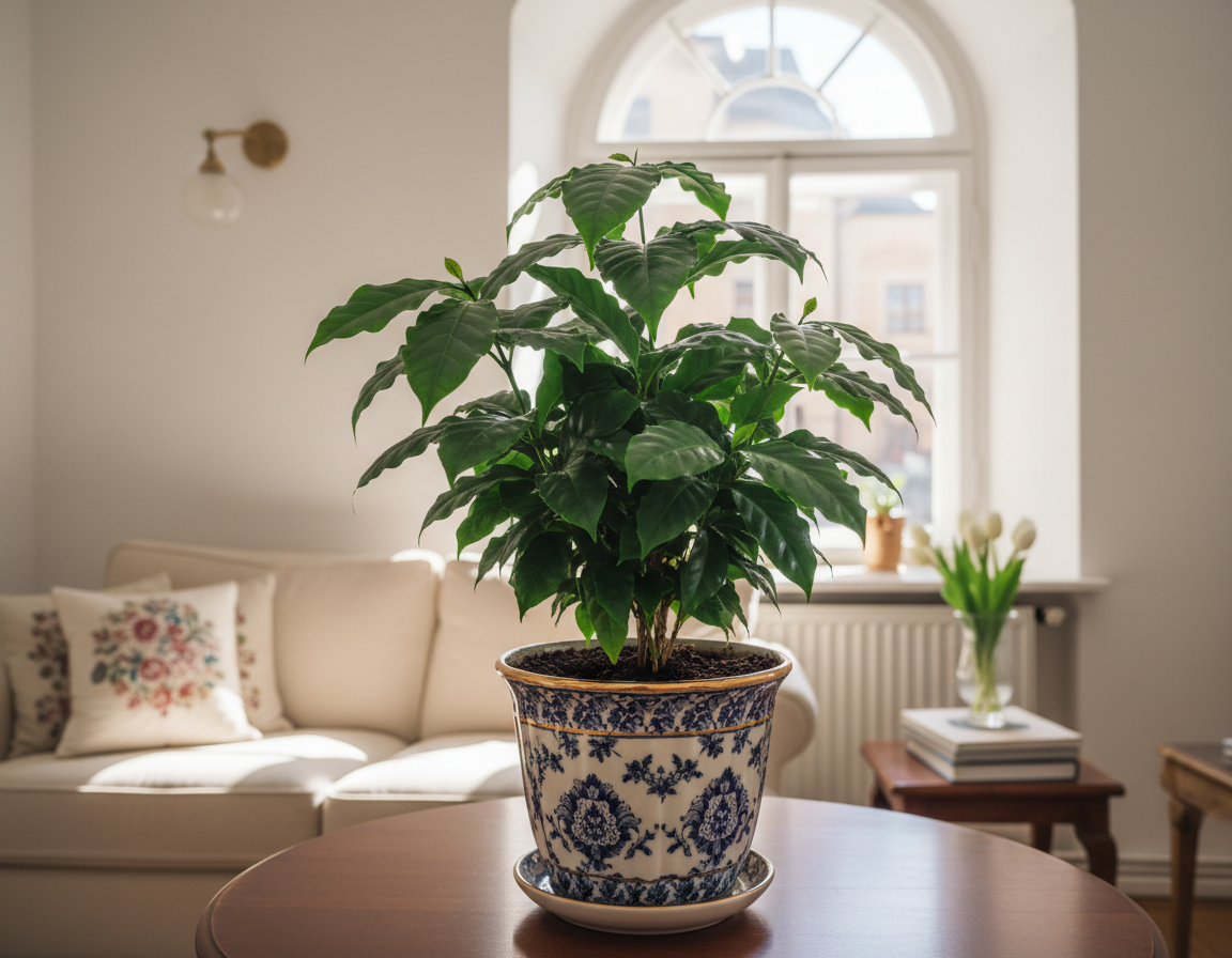 Na první pohled může kávovník působit jako nenáročná pokojová rostlina, ale ve skutečnosti má poměrně jasné požadavky. Nejlépe prospívá při denních teplotách zhruba 21 až 27 °C a nočních kolem 15 až 18 °C. Vyhovuje mu vyšší vzdušná vlhkost, světlé místo bez ostrého celodenního úpalu a ochrana před průvanem. Právě průvan, chlad nebo náhlé výkyvy teplot bývají častým důvodem, proč kávovníku začnou opadávat listy. Doma proto bývá ideální umístění u světlého okna s rozptýleným světlem, případně v zimní zahradě, kde se teplota drží stabilněji. Když teploty klesají pod přibližně 13 °C, rostlina už může začít strádat.
