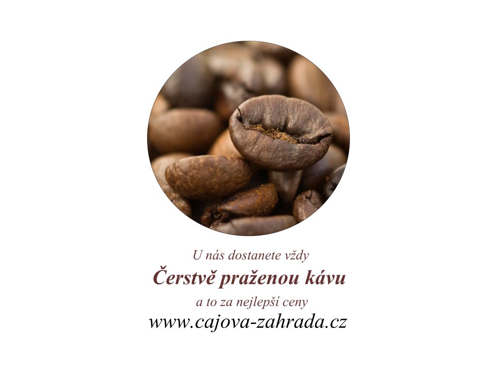 Čajová zahrada je e-shop a kamenný obchod kde najdete výběrovou kávu arabica se zaručenou maximální čerstvostí. A to protože pražení kávy probíhá v Čechách. Velmi výrazná chuť i aroma kávy. Pražíme výhradně kávu odrůdy arabica z různých oblastí světa.