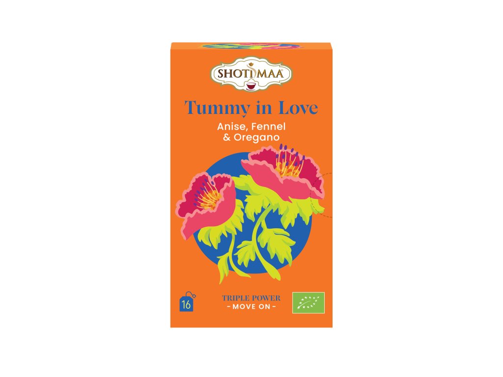 Směsi Shoti Maa propojují byliny a koření tak, aby z obyčejné pauzy udělaly malý rituál. Tummy in Love (Move On) staví na tradičně oblíbené kombinaci fenyklu a anýzu, které v šálku vytvářejí přirozenou sladkost a hladké, sametové tělo. Oregano se saturejkou přidávají zelenou bylinkovou noblesu a koření (kardamom, skořice, hřebíček, pepř) dotváří hřejivý charakter s elegantním dozvukem.