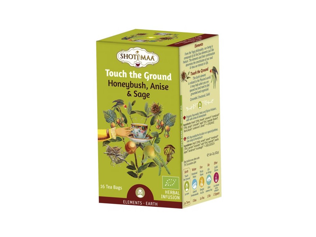Shoti Maa Touch the Ground (Dotek země) je ájurvédský čaj poskytující podporu a rovnováhu prvku země. Země nás podle ájurvédy udržuje v kontaktu s fyzickým a materiálním světem, ve kterém žijeme. Tento čaj oceníte hlavně v okamžiku, kdy se budete cítit jakoby mimo realitu – šálek kvalitního yogi čaje Shoti Maa, jehož příprava vám nezabere mnoho času, vás spolehlivě vrátí zpátky na zem.
