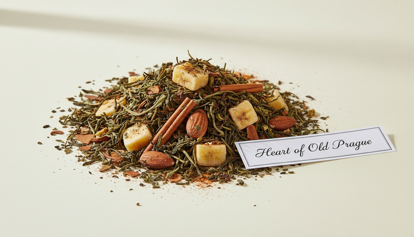 Pokud hledáte zelený ochucený čaj s jemně dezertním profilem, mandlovým tónem a příběhem inspirovaným Prahou, Srdce staré Prahy je velmi povedenou volbou. Nabízí harmonii zeleného čaje, banánků, mandlí a skořice v originální směsi, která v sobě spojuje chuť, vůni i emoci městské romantiky.